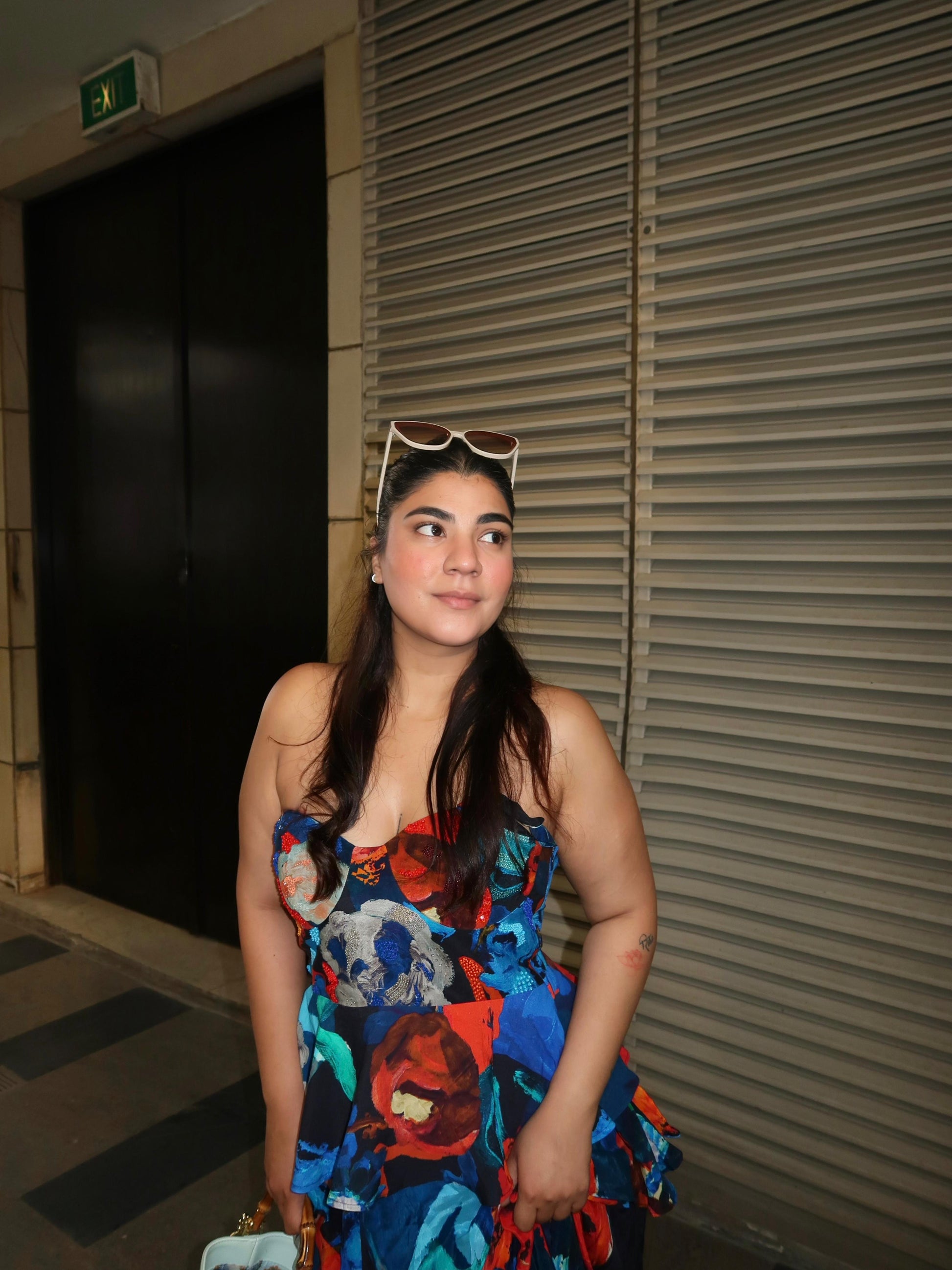 A printed bustier with embroidery and a stylish peplum paired with a three tier ruffle maxi skirt. For a vibrant and layered look!
